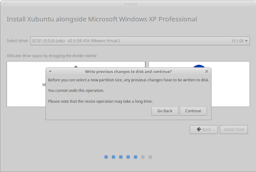 If you choose to install Xubuntu alongside another existing operating system, you will be given the option to adjust how much hard disk space Xubuntu will use after you click the button.