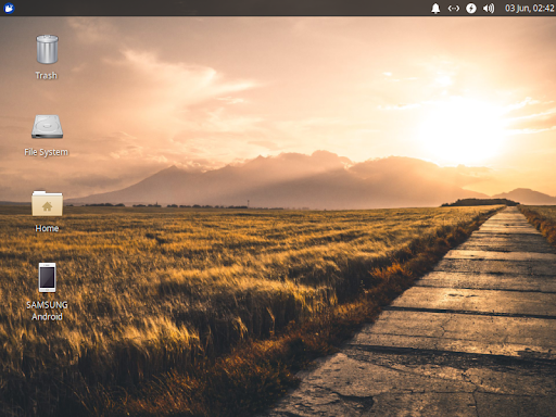 The default desktop has three primary icons -- Home, File System and Trash -- as well as icons for partitions and removable devices, if they are present. Additional files, folders, application launchers and website shortcuts can be added to the desktop and can be manually or automatically arranged. You can set the desktop wallpaper and which desktop icons are visible, as well as their options, by right-clicking in a blank area of the desktop and choosing Desktop Settings from the context menu.