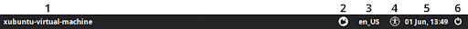 On the left side of the panel you will find the button, which has the icon of the Xubuntu logo. Next to that is the list of running applications with available windows, known as the window list or taskbar buttons.