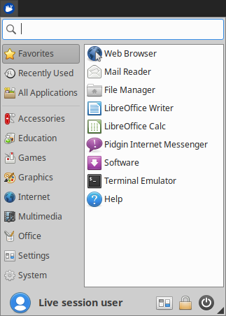 To customize the appearance and behaviour of the , right-click the menu icon and select Properties. To customize which applications appear in the menu and their properties (icon, text, command), right-click the menu icon and select Edit Applications or open Menu Editor. |