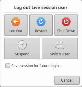 Xubuntu provides a collection of commands for managing your session. These commands are accessible from the command buttons section of the as well as through shortcut keys.