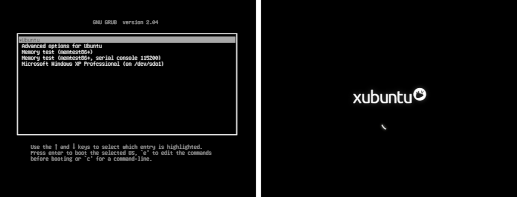 If you have installed Xubuntu alongside another OS (Operating System), also known as dual booting, then you will be presented with the GRUB boot menu when you turn on your computer. This menu gives you options to start Xubuntu, start Xubuntu with advanced options, run a memory test or start other OSes. You may press the Escape key before booting to access the GRUB menu if you are not on a dual boot system.