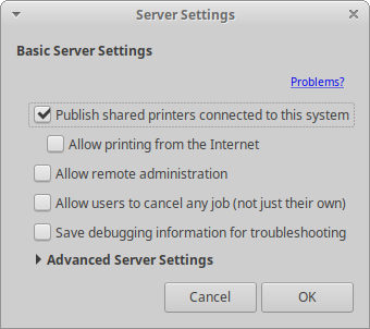 If you are experiencing problems adding a printer with the steps above, you can try using the CUPS browser-based interface. It can be accessed at http://localhost:631/. Click the Administration menu item at the top of the page for options to add and find new printers. Do not make any changes in the Printers settings dialog or other system printer management utilities until you are finished using the CUPS browser-based interface. You may need to restart CUPS for it to reflect any changes that you make directly in the browser-based interface.